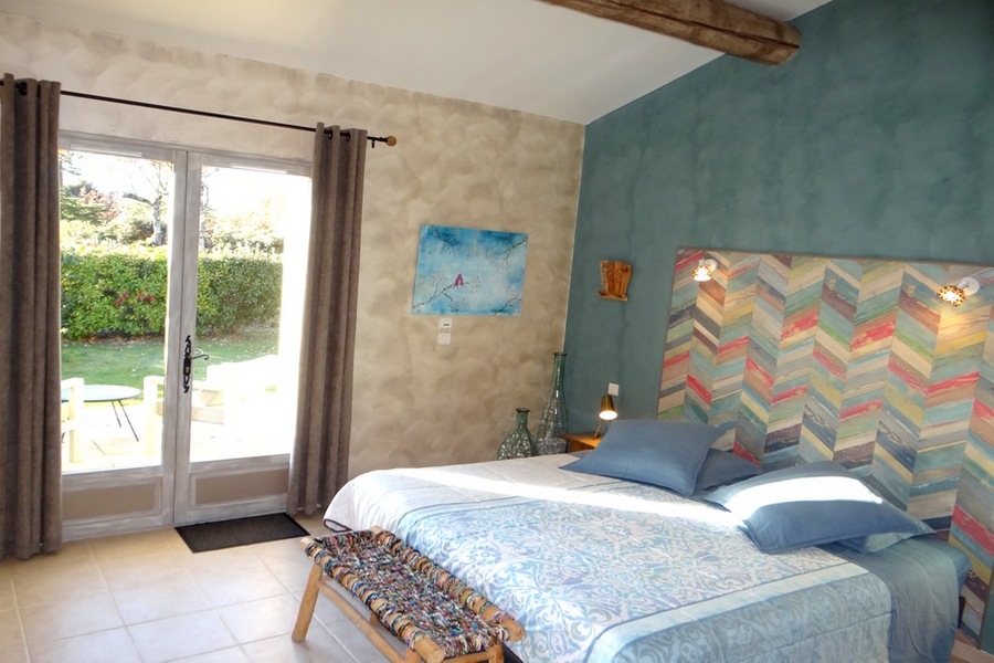 Chambre pour 2 personnes, située en rez de chaussée, ouvrant sur une terrasse privée tournée vers Gordes